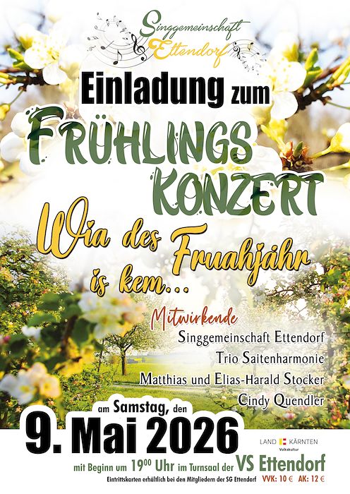 Frühlingskonzert der Singgemeinschaft in Ettendorf im Turnsaal der ehemaligen VS Ettendorf 19:00 Uhr