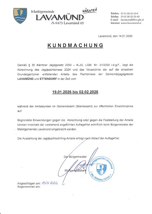 Auszahlung Jagdpachtzins