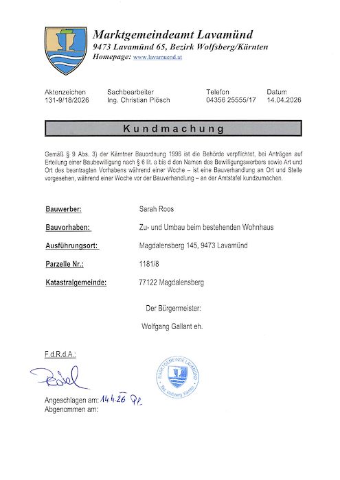 Kundmachung eines Bauantrages