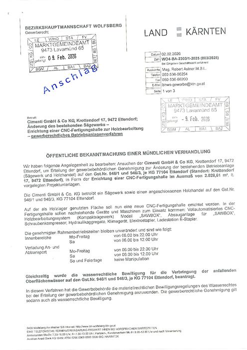 Öffentliche Bekanntmachung einer gewerberechtlichen Verhandlung