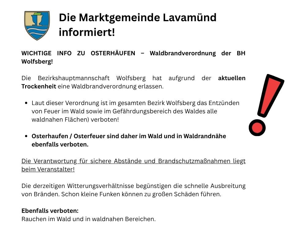 Wichtige Information zu Osterhäufen – Waldbrandverordnung der BH Wolfsberg!
